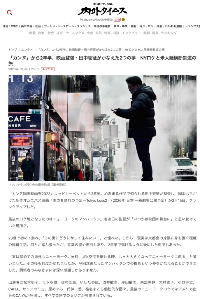 【朝日新聞AERA 監督田中壱征インタビュー記事】